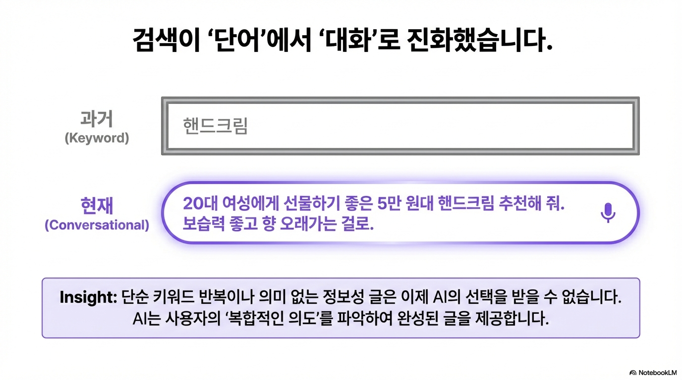 이러한 검색 환경의 변화는 마케터와 콘텐츠 창작자들에게 완전히 새로운 과제를 던져주었습니다.