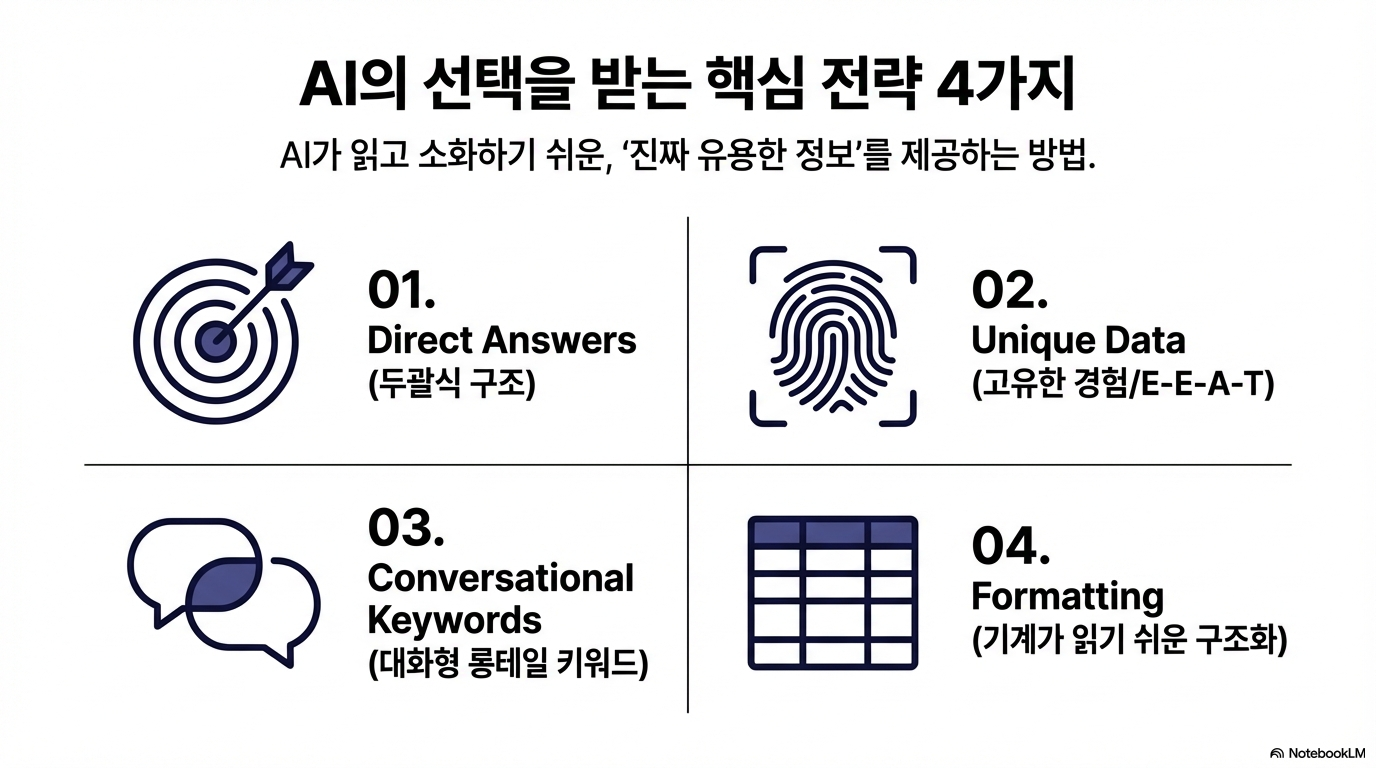 AI의 선택을 받는 GEO 핵심 전략 4가지