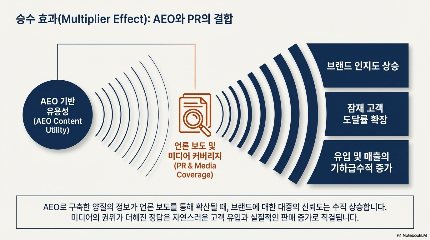 AEO를 통해 구축한 콘텐츠는 언론 보도를 통해 더욱 큰 효과를 발휘할 수 있습니다. 언론에 보도될 경우, 브랜드의 신뢰도가 향상되고, 더 많은 잠재 고객에게 도달할 수 있는 기회를 가지게 됩니다. 보도자료나 기사에서 다룬 내용이 사용자에게 유용하다면, 그 기업에 대한 긍정적인 인식이 더욱 확고해질 것입니다.