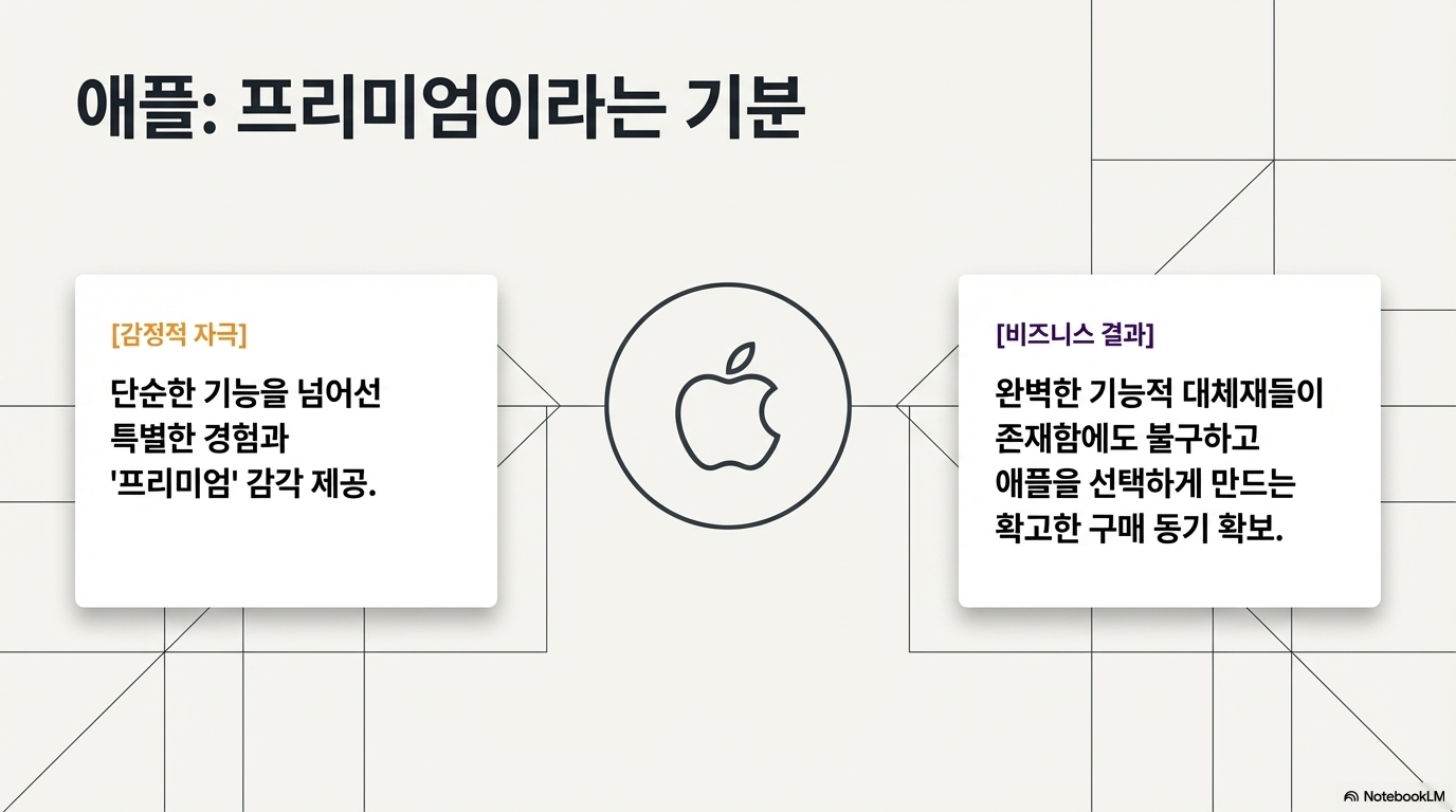 또 다른 사례로는 '애플'을 들 수 있습니다. 애플은 제품을 통해 소비자에게 특별한 경험을 제공하며, 이를 통해 소비자들에게 긍정적인 감정을 유도하고 있습니다. 애플의 제품은 기능적인 측면뿐만 아니라, 소비자에게 '프리미엄'이라는 감정을 주며, 이는 소비자들이 애플 제품을 선택하는 이유 중 하나입니다.