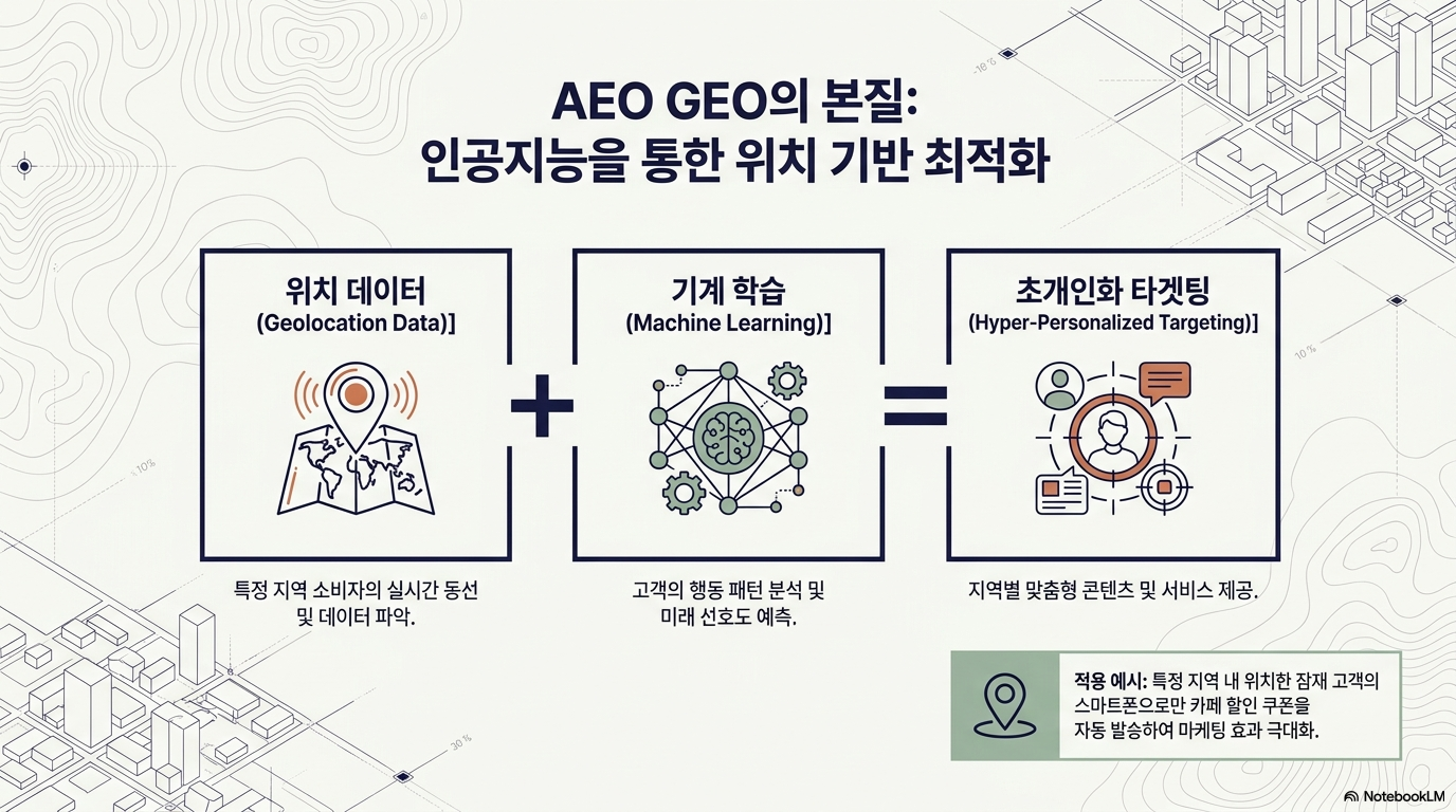 AEO GEO는 'AI Enhanced Optimization for Geolocation'의 약자로, 인공지능을 활용하여 위치 기반 마케팅을 최적화하는 기법입니다. 이는 특히 디지털 마케팅 전략에서 중요한 역할을 하며, 기업이 특정 지역의 고객들에게 맞춤형 서비스를 제공하는 데 큰 도움을 줍니다. 예를 들어, 한 카페가 특정 지역의 고객들에게만 할인 쿠폰을 제공하는 전략을 사용할 수 있습니다. 이렇게 하면 고객의 위치에 따라 마케팅 효과를 극대화할 수 있습니다.